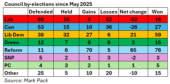 2. Reform may have peaked. Recent nationwide polls give a mixed picture, but the average has tended to drift slightly down. In the autumn, most polls showed them on or above 30 per cent. This month, most have put them below 30 per cent.